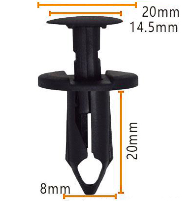 Әр түрлі қосымшалар үшін қауіпсіз және сенімді қосылуға арналған жоғары сапалы пластикалық бекіткіш клиптермен таныстыру. Бұл қара қыстырғыштар диаметрі 20 мм, ал биіктігі 14,5 мм, оңай өңдеу мен орнатуды қамтамасыз етеді.