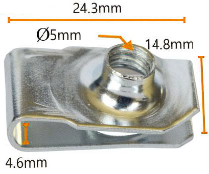Бекіткіш жалпы өлшемді, ені 24,3 мм, бойында 24,3 мм өлшеуге және биіктігі 14,8 мм өлшеуге, сіздің көлігіңіздегі бекіту нүктелеріне сәйкес келмейді. Сонымен қатар, суреттің төменгі жағында көрсетілген 4,6 мм ұзындық белгілі бір бөліктің критикалық өлшеміне сілтеме жасай алады, әрі қарай өнімнің кәсібилігі мен дәлдігін көрсетеді.